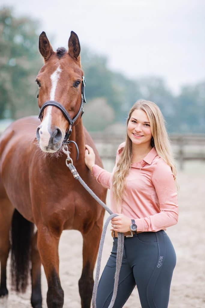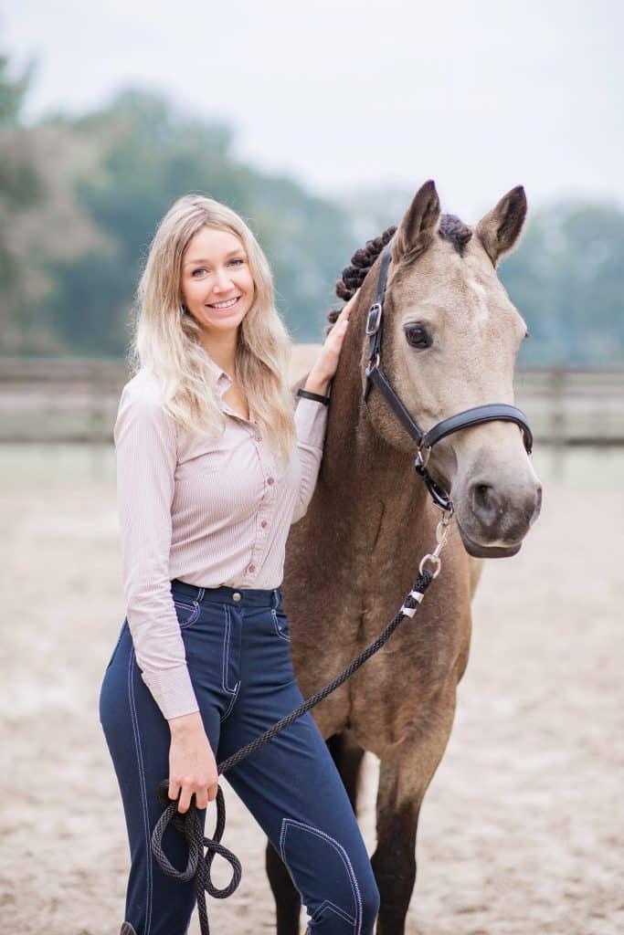 Nadine heeft aan de hogeschool Rotterdam haar bachelor in Social work (SPH) met goed resultaat voltooid. Na gewerkt te hebben in de jeugdhulpverlening was de wens om de paarden bij het werk te betrekken groot. Daarom is ze in 2021 gestart aan de HBO+ opleiding Hippotherapie aan de hogeschool Artevelde te Gent. Vanaf juli 2023 kan Nadine zich Equine Assisted Therapist (EAT) noemen.